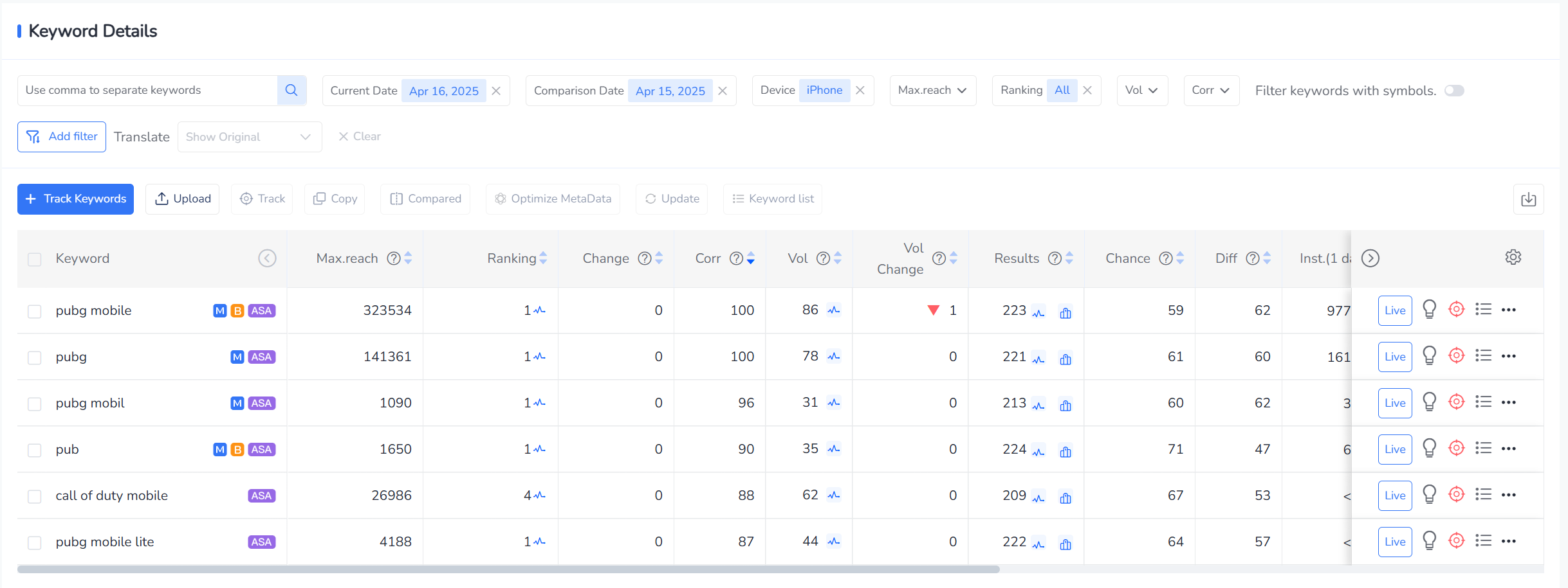 FoxData's new ASO keyword feature perfectly assists you in selecting, tracking, and discovering new keywords.