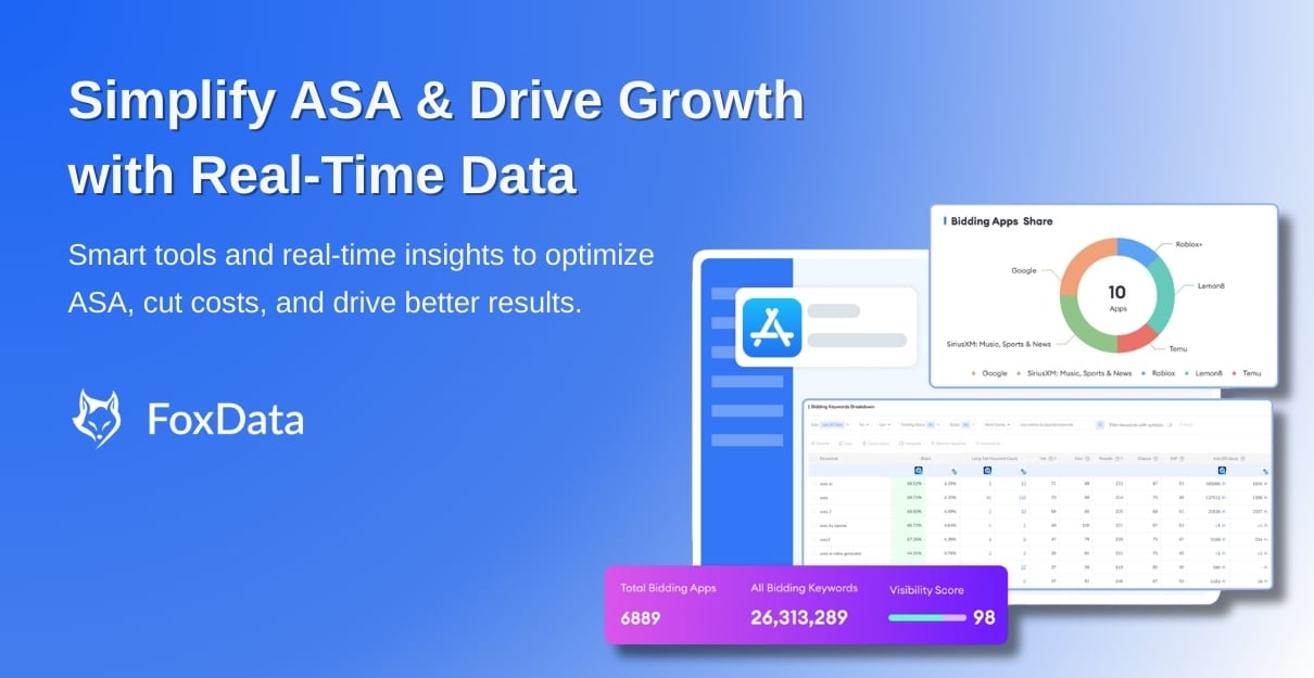 Discover keyword opportunities, monitor competitors, and improve campaign performance using FoxData’s ASA analytics tools.