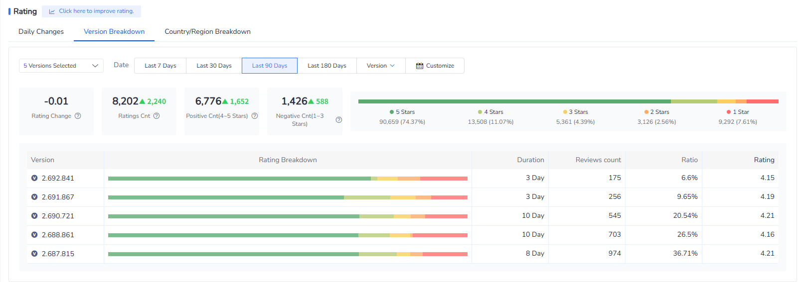 ✅ Version breakdown — Each release can lift or damage reputation. Find out exactly which version triggered changes so your iterations are evidence‑driven.