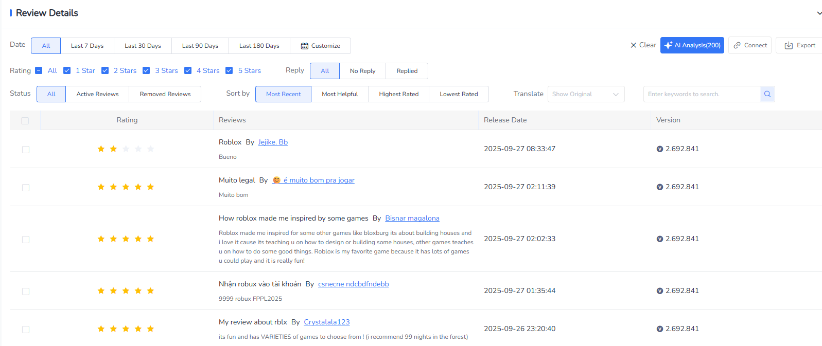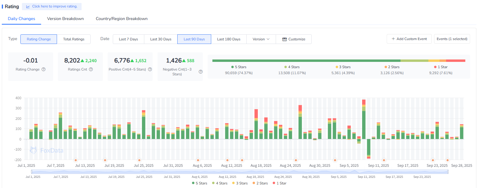 - Dynamic monitoring: 1–2 star reviews surged +210% within 7 days, mostly from new version users. The peak occurred the day after the update.