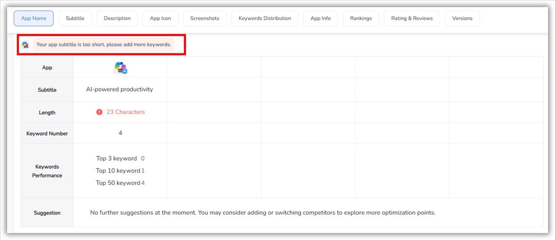 Эта функция также выделяет популярные ключевые слова Discovery в вашей нише, основанные на реальных данных App Store. Больше никаких догадок — только чёткая аналитика, которая поможет вам сэкономить часы тестирования и сотни долларов на рекламе.